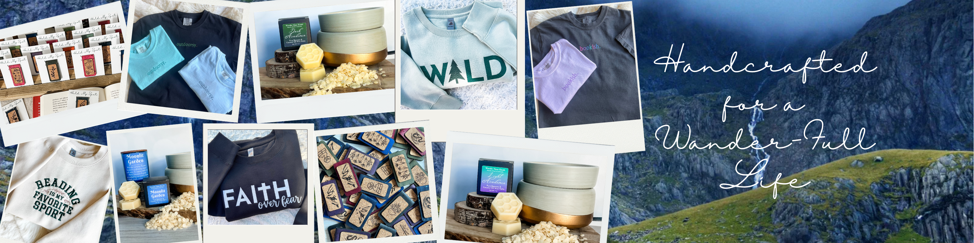 Hi there! I am Jessica, the creative brain behind Wander Haus Goods & I feel so blessed and excited you are here! My family and I thank you from our whole hearts for all of your support; any profit I receive goes right into their passions, with a percentage set aside each year to a local charity. I love to laugh, have a great cup of coffee, and go on adventures whenever we can. We now call Colorado home; just outside the AF Academy, so the sound of freedom is never too far away! (Especially in May - IYKYK)
