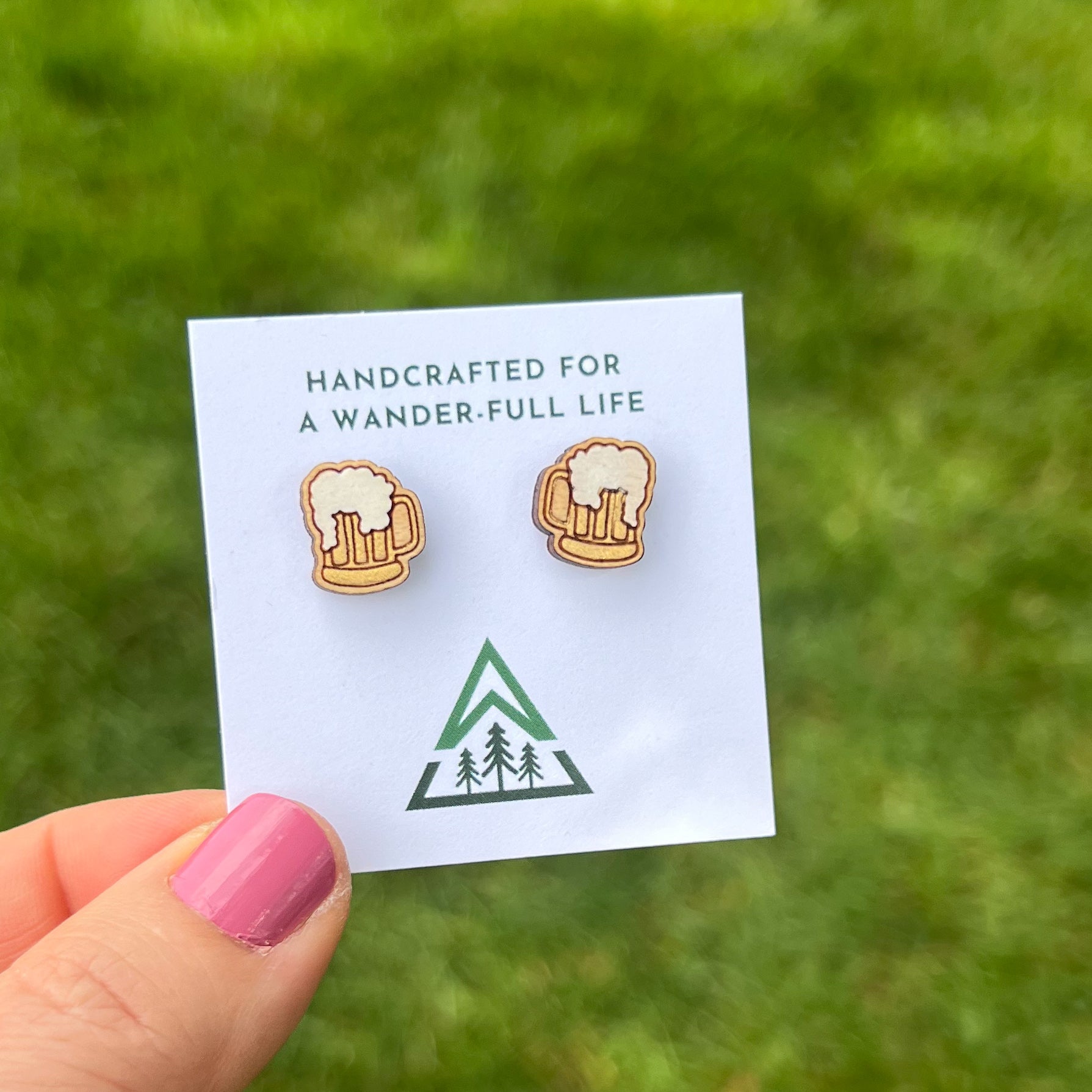 Show off your love for nature with these hand-painted studs! Made with wood and earth-mineral paint, these earrings have an earthy and fun vibe, perfect for adding a unique touch to any outfit.