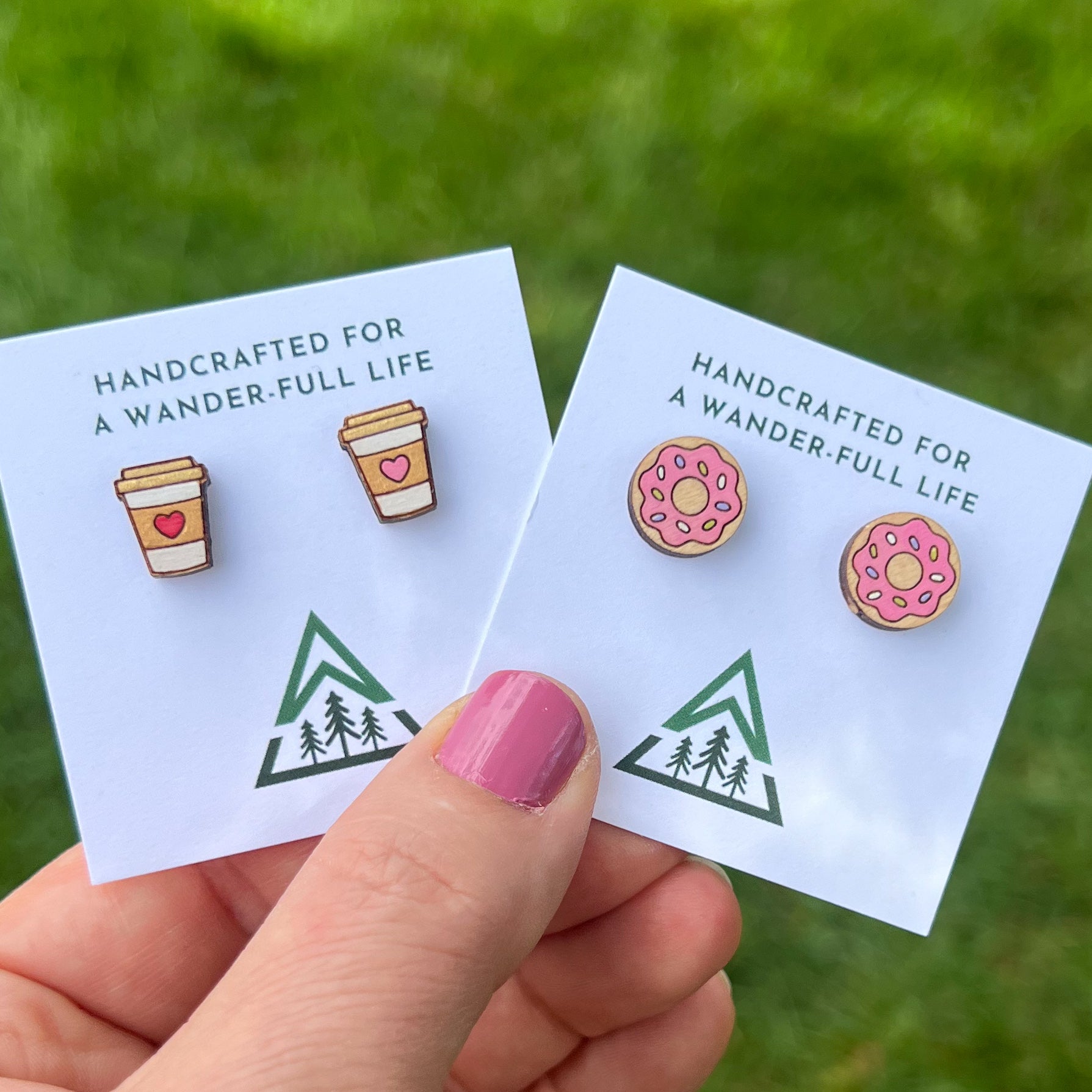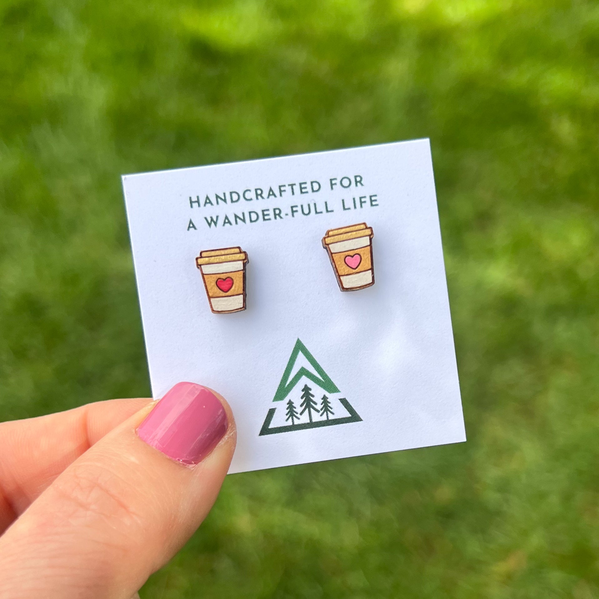 Show off your love for nature with these hand-painted studs! Made with wood and earth-mineral paint, these earrings have an earthy and fun vibe, perfect for adding a unique touch to any outfit.