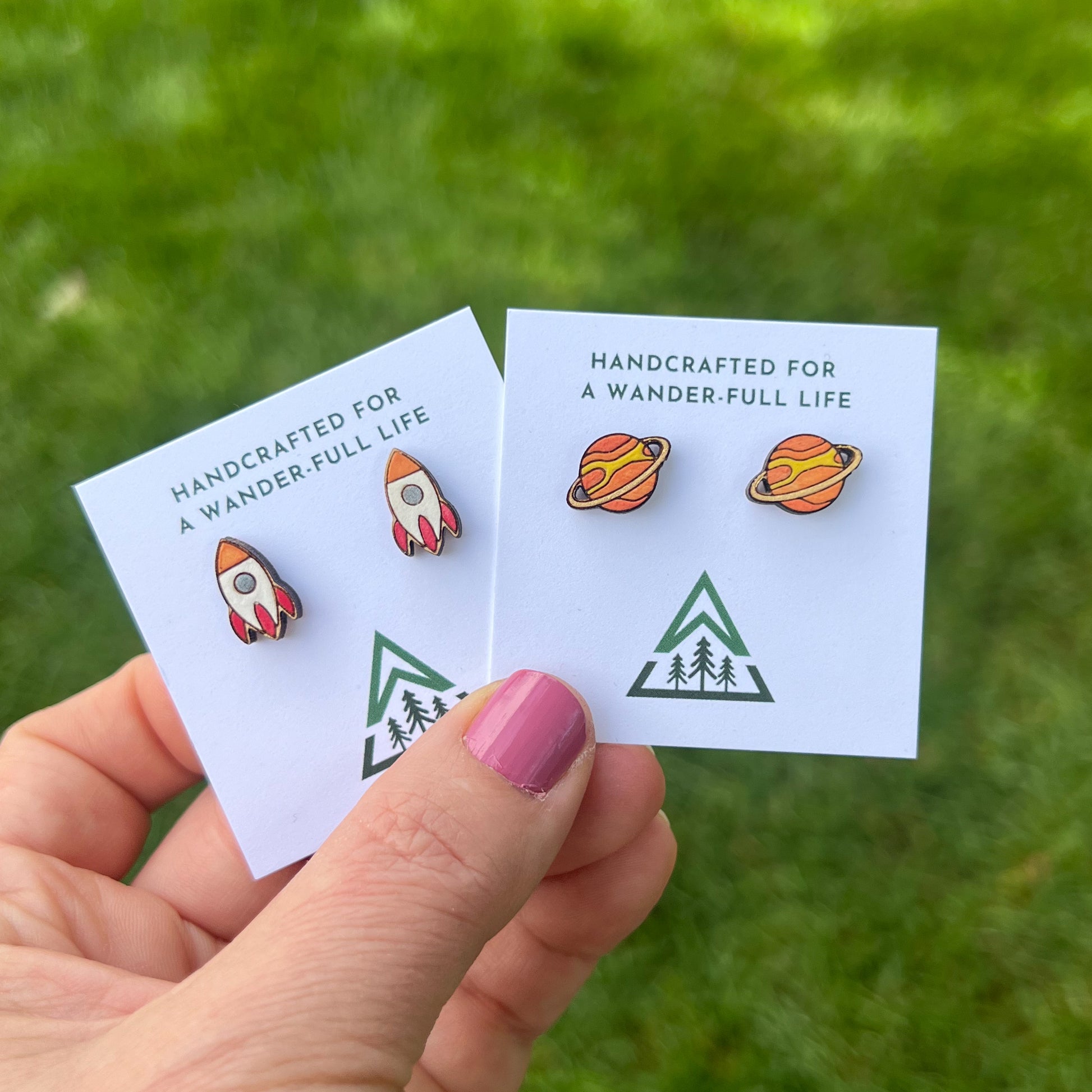 Show off your love for nature with these hand-painted studs! Made with wood and earth-mineral paint, these earrings have an earthy and fun vibe, perfect for adding a unique touch to any outfit.